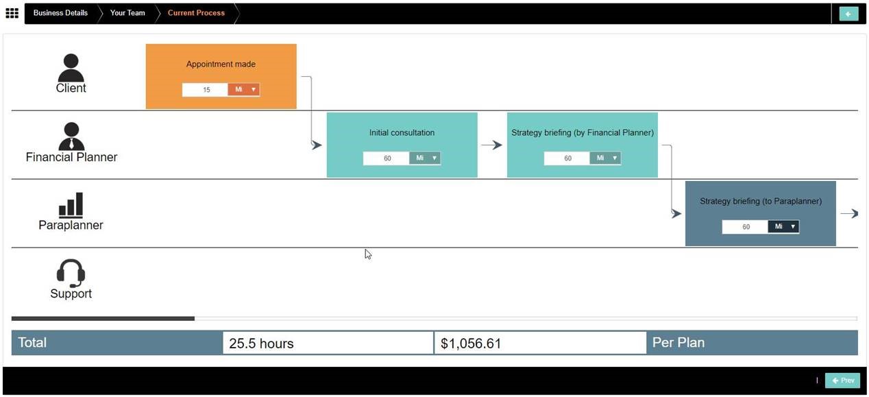 The tool helps answer some big questions: Can you make your advice process more efficient with technology? What parts of the process are taking too long or are being done by the wrong part of your business?